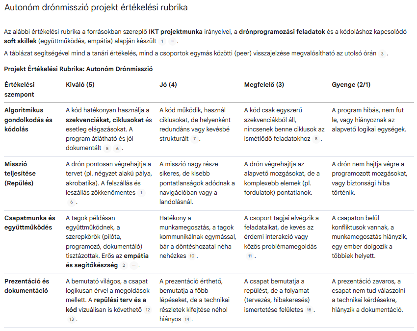 • STEM kapcsolat: Annak ismertetése, hogyan kapcsolódik a drónprogramozás a matematikához (geometria), a fizikához (sebesség, gyorsulás) és az informatikához (algoritmusok).