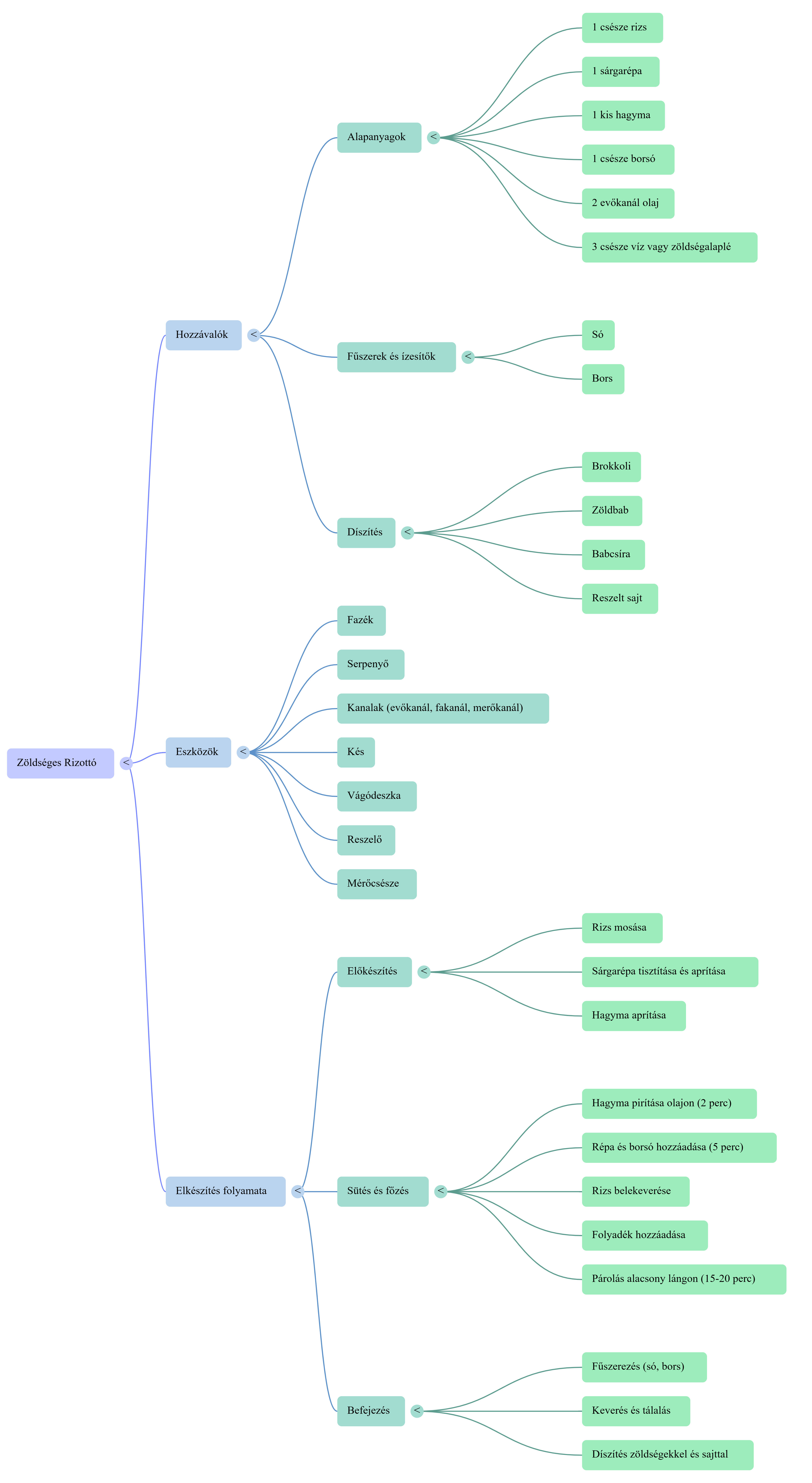Közösen megbeszéljük, milyen ételeket kell az ágazati alapvizsgán elkészíteni, mitől jó és használható egy recept, miért fontos tudni elmondani egy étel elkészítését angol nyelven, továbbá hogyan és hol tudják a szakmai angol nyelvet a jövőben kamatoztatni. Mindeközben a Google NotebookLM segítségével generált gondolattérképet látják a zöldséges rizottó receptjéről magyar nyelven.